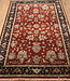 Hand-knotted Indo Tabriz rug (3’ x 4’11”) with 100% wool pile on cotton foundation. Features natural dyes, a rich red field, floral motifs, and a navy border—perfect for adding traditional charm to any space. Read more..