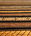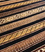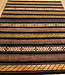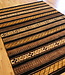 The dense weave on this piece supports a series of horizontal bands in warm natural tones. Stripes of earthy brown, camel and muted gold alternate with darker indigo‑black bands, while narrower ivory borders are decorated with simple, stylised floral motifs. Gabbeh rugs are celebrated for their bold, uncomplicated designs and free‑spirited approach to patterning; stripe motifs, in particular, are a recognised style within the Gabbeh repertoire. The colours are created using plant‑based dyes, giving the rug its harmonious palette of rich, natural hues and subtle tonal variations.