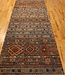 Hand-knotted 2'6" x 8' Pakistani runner inspired by tribal Gabbeh design. Features wool pile on cotton foundation, dense weave, and natural dyes for rich character. Read more..