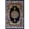 The design features an intricate central medallion with floral motifs in rich gold, pink, and blue tones, set against a deep navy background and framed by ornate borders. Its lightweight yet durable construction makes it ideal for accenting entryways, bedside areas, or offices.