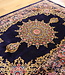 2' x 3' Qom design machine-made rug in 100% artificial silk with a silky sheen, intricate floral medallion, and rich navy, gold, pink, and blue tones. Elegant, durable, and perfect for adding Persian charm to any space. Read more..