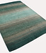 Crafted with all-natural vegetable dyes, the rug displays serene blue, teal, and slate-gray tones that flow in soft horizontal gradients. The subtle transitions of color evoke a sense of calm and depth, making it a stunning choice for modern, coastal, or minimalist interiors.