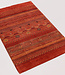 Hand-dyed with all-natural vegetable dyes, its vibrant red and terracotta tones are beautifully accented with subtle geometric and tribal motifs, reflecting the timeless simplicity of the Gabbeh style. Each variation in hue and pattern tells a story of artistry and cultural tradition, making this rug a unique, one-of-a-kind statement piece.