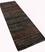 Hand-knotted 2'7" x 8' Gabbeh rug from Pakistan with Persian knots, dense wool pile on cotton foundation, and natural dyes. Features charcoal and copper tones with tribal patterns—durable, elegant, and perfect for hallways or entryways Read more..
