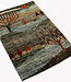 Dyed with all-natural vegetable dyes, this new Gabbeh rug displays a breathtaking Tree of Life design beneath a soft, earthy sky. Its palette of muted blues, browns, and rich reds evokes the peaceful beauty of nature — with blooming trees, tiny birds, and a glowing sun symbolizing harmony and renewal.