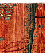 Dyed entirely with all-natural vegetable dyes, this new Gabbeh rug radiates with warm tones of burnt orange, earthy green, and deep navy, forming a vibrant “Tree of Life” landscape filled with stylized trees, animals, and natural motifs. Its compact size makes it ideal for small spaces, entryways, or as a decorative wall hanging, bringing a touch of warmth and symbolism to any interior.