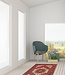 The rug’s vibrant palette includes deep crimson reds, ivory, navy, and subtle accents of sky blue and earthy tones, all created using natural vegetable dyes. These dyes produce rich color depth and beautiful natural variation, giving the rug a warm, authentic character.