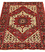 Hand-knotted Persian Bijar rug (3'3" x 4'9") with wool pile on cotton foundation and vegetable dyes. Dense weave with bold geometric medallion pattern. Read more..