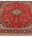Hand-knotted Persian Kashan rug (9'4" x 11'9") with wool pile on cotton foundation and chromatic dyes. Dense weave featuring a classic red medallion design—perfect for living rooms or dining areas Read more..
