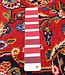 The vibrant crimson red field contrasted with deep navy, ivory, and subtle blue accents is created using high-quality chromatic dyes, producing brilliant color clarity and crisp pattern definition that beautifully emphasize the rug’s intricate artistry.