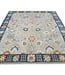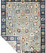 This rug features a beautifully balanced design with intricate geometric and floral elements set on a soft light blue field with a contrasting navy border. The refined color combination gives the rug a sophisticated and timeless appearance.
